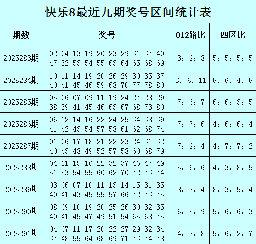 快乐8第2025292期区间分析